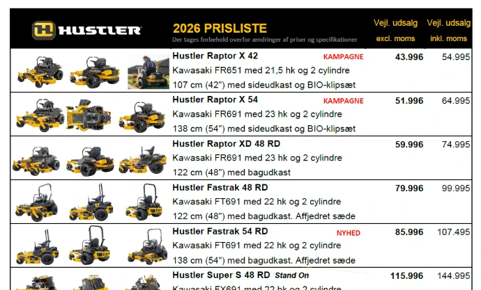 2026 Hustler og Grillo - Katalog med priser og specifikationer