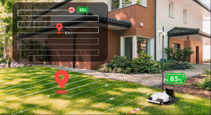 YUKA Mini 600 Robotplæneklipper kører helt trådløst via RTK satellitnavigation og 3D Vision.