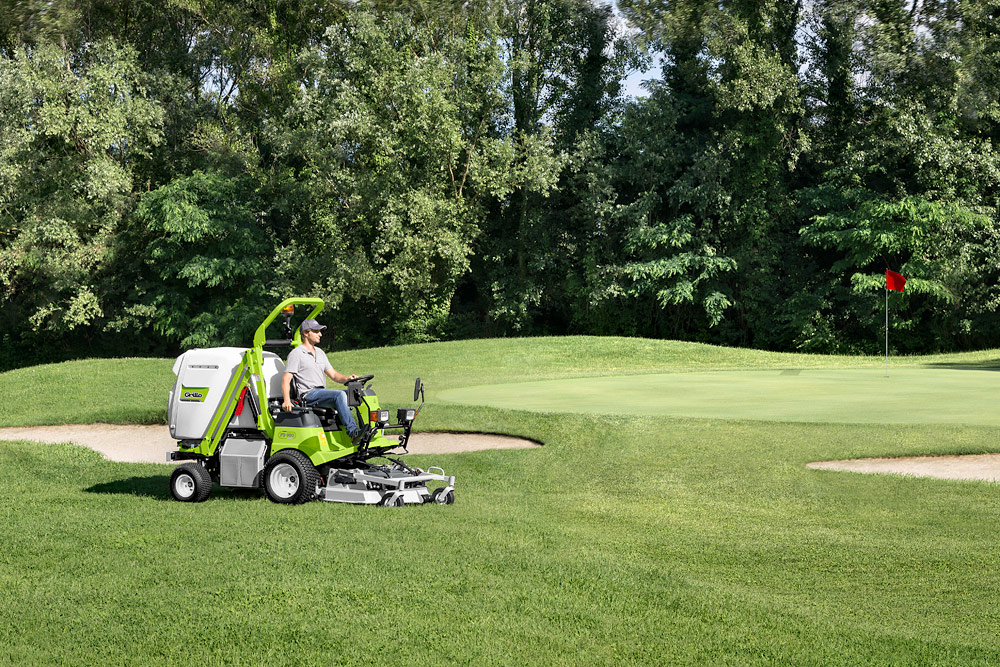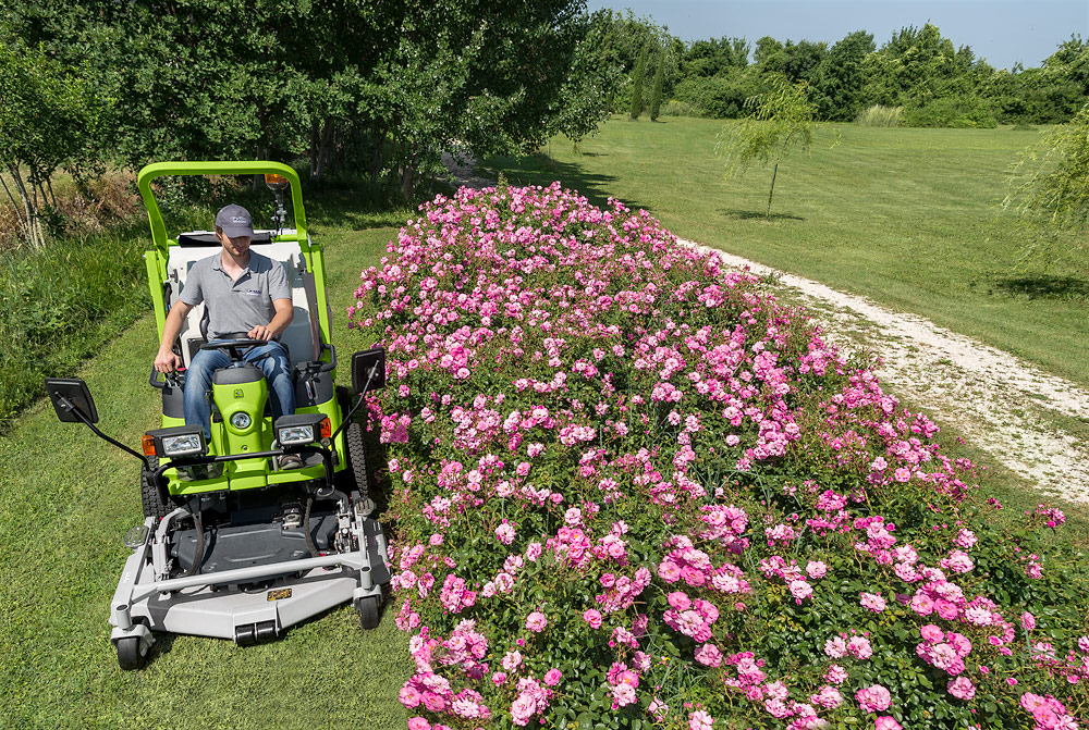 Grillo FD900 er fuldt udstyret med ergonomisk korrekt placeret betjening og hydraulisk højderegulering af klippehøjden.
