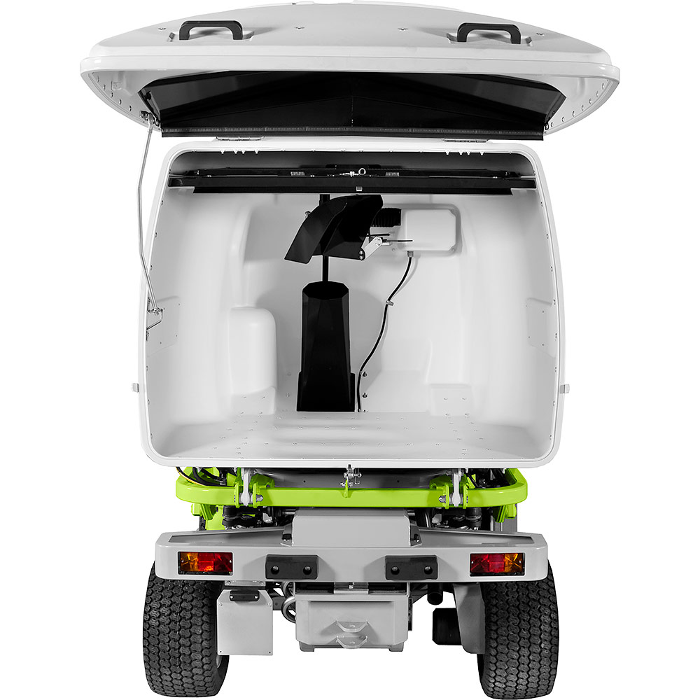 Grass catcher charging system Ø 400 cm (16 “) turbine with hydraulic motor fitted with a safety valve to avoid damage due to foreign objects. Turbine activation independent of the cutting deck. Double working speed.