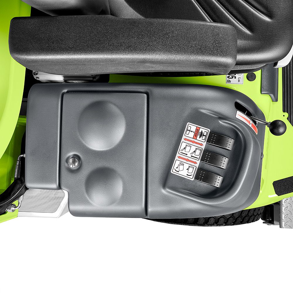 Standard features automatic disengagement of blade and turbine when grass catcher is full. Hydraulic deck lifting and grass catcher emptying. Lights and indicators kit