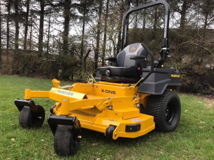 En topprofessionel zero turn, som er bygget uden at gå på kompromis nogen steder. Hustler X-ONE har bagudkast og en kraftig Kawasaki FX850V motor med 27 hk. Maskinen er effektiv i alle typer græs og den høje topfart på 19,3 km/t gør at store arealer klares hurtigt. Det affjedrede komfortsæde med højt ryglæn, giver føreren en helt fantastisk køre-oplevelse, som gør selv de længste arbejdsdage til en fornøjelse.
