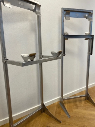 Stativet er udført i 2 mm rustfri plade, og sammensat med rustfri popnitter
