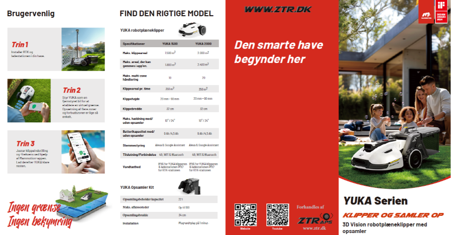 YUKA er skabt til præcis plænepleje, der tilpasser sig forskellige udendørs områder. Med sin avancerede konstruktion og sofistikerede algoritmer sikrer YUKA en græsplæne, der ser ud som et perfekt tæppe